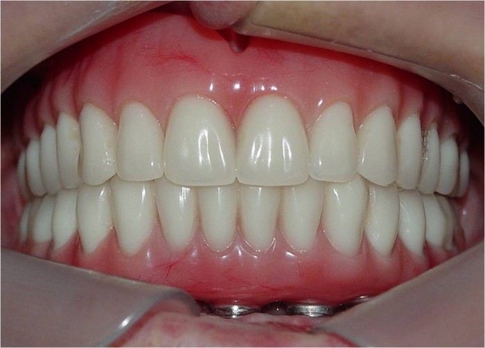 Prótese fixa inferior em resina instalada