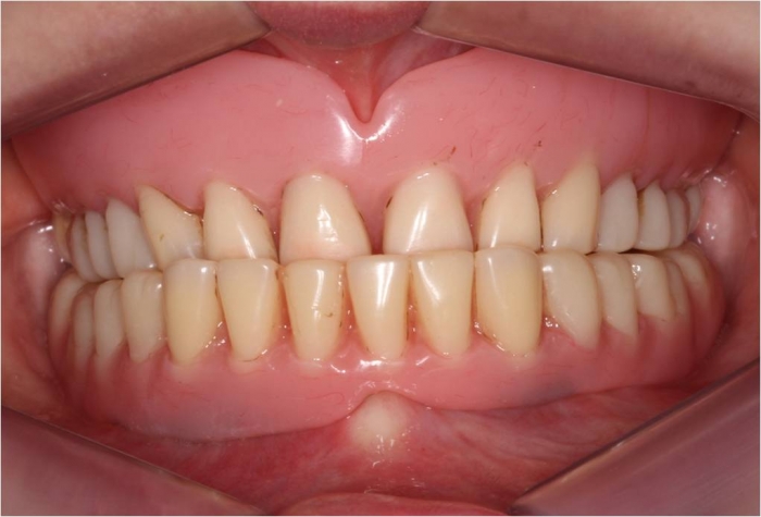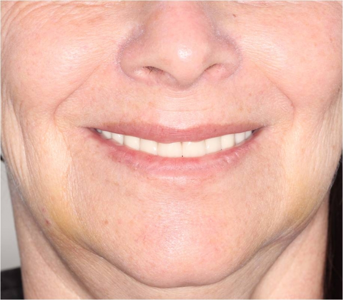 Imagem após prótese imediata inferior e nova prótese superior, provisórias instaladas