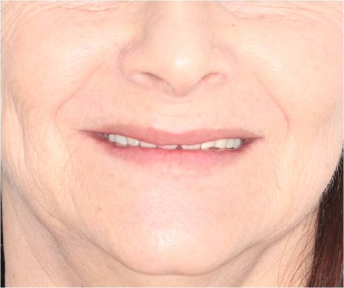 Imagem após prótese imediata fixa inferior e nova prótese superior, provisórias instaladas