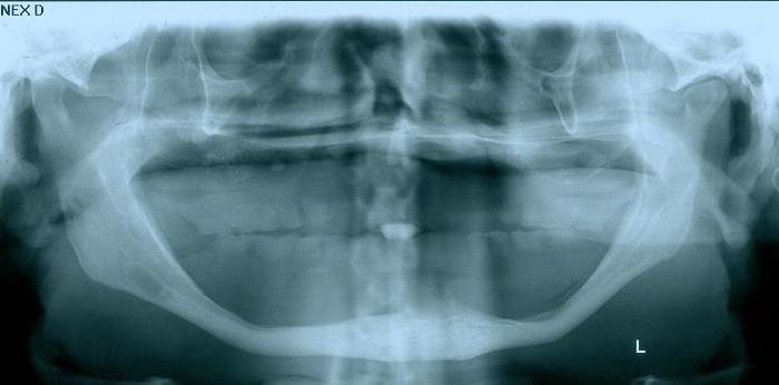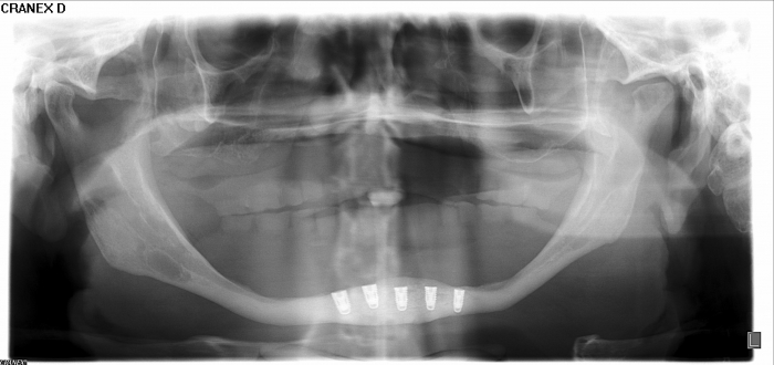Raio - x Panorâmico Implantes inferiores instalados, em Outubro de 2015