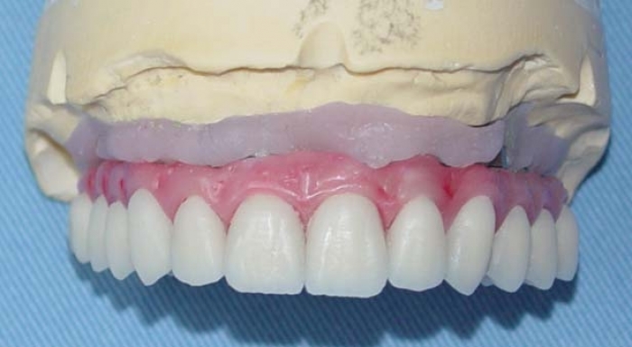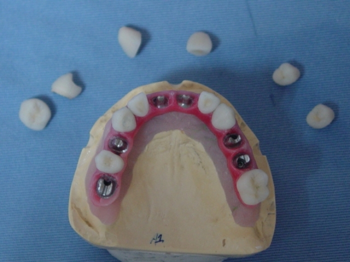 Imagens da prótese de porcelana com dentes individuais, ainda no laboratório