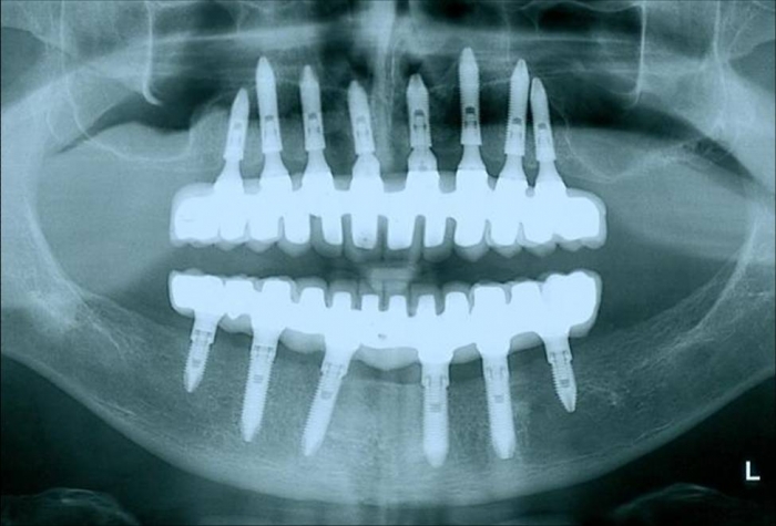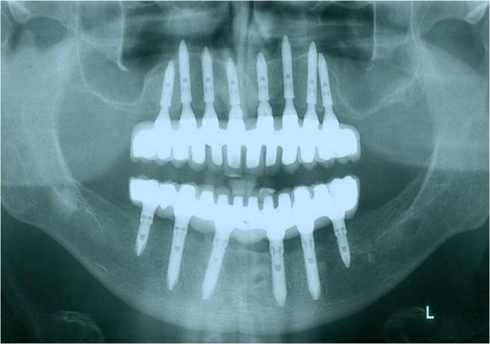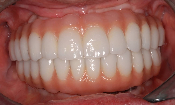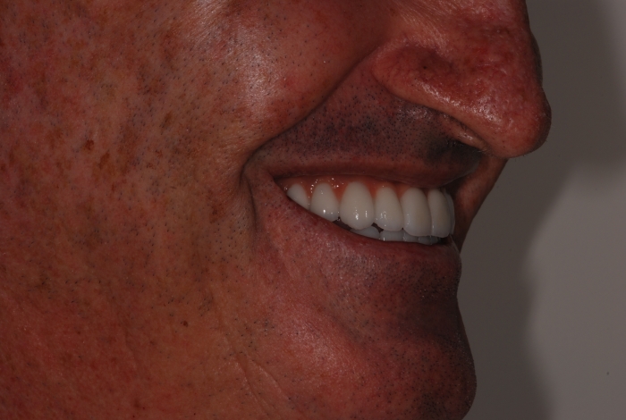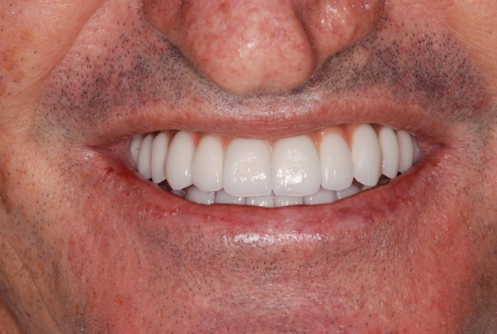 Sorriso final após enxerto de ilíaco, implantes e próteses fixas