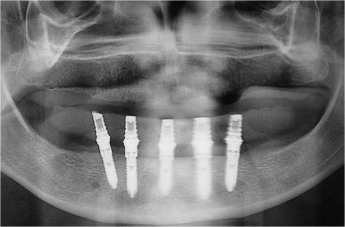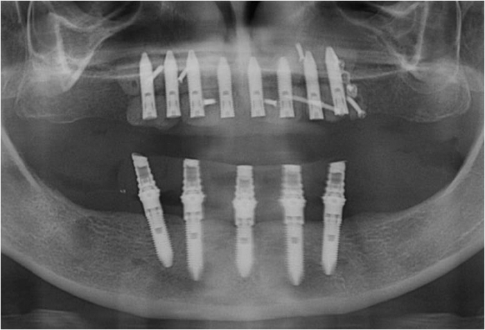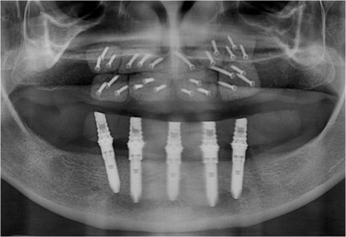 Raio X do enxerto ósseo na maxila com osso de calota craniana