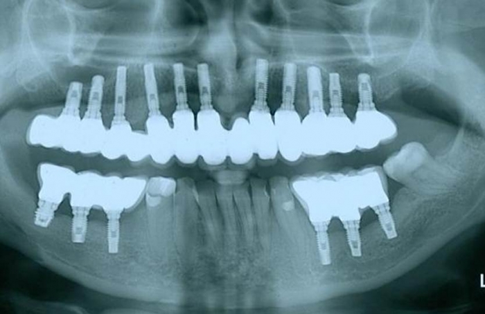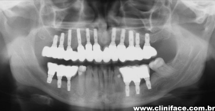Raio X de controle, 24 meses após instalação das próteses fixas sobre implantes
