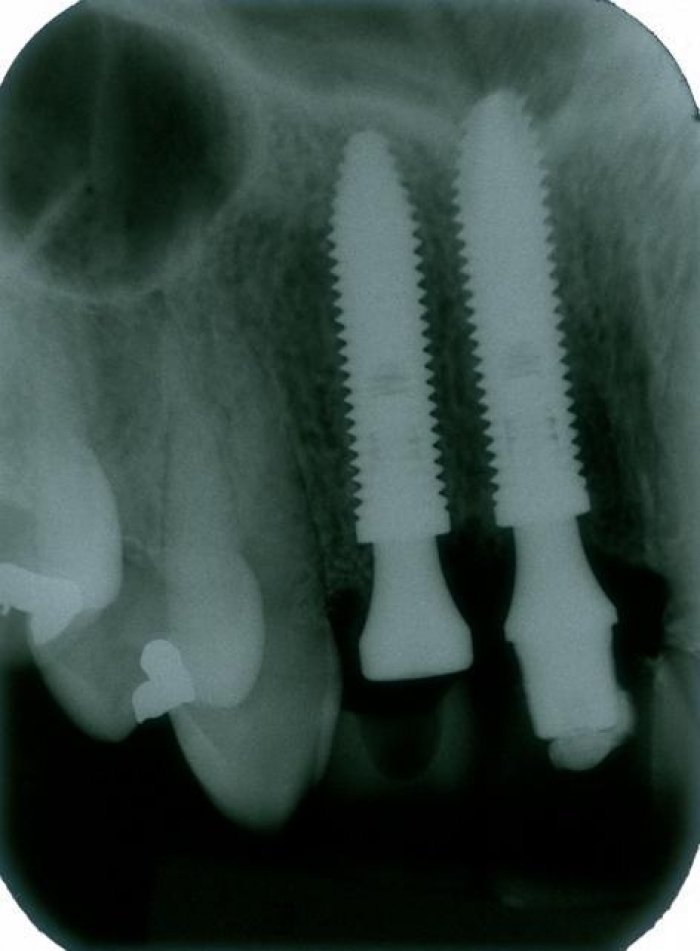 Rx após extração e implantes imediatos nos dentes 12 e 22