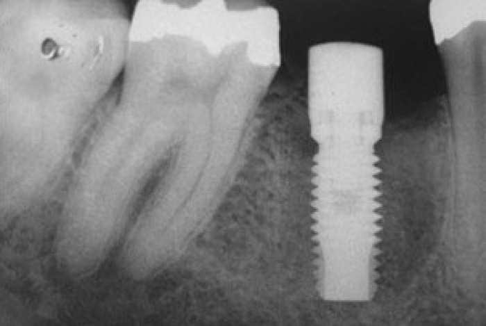 Imagens finais com a prótese fixa em porcelana sobre implante do caso terminado em fevereiro de 2009