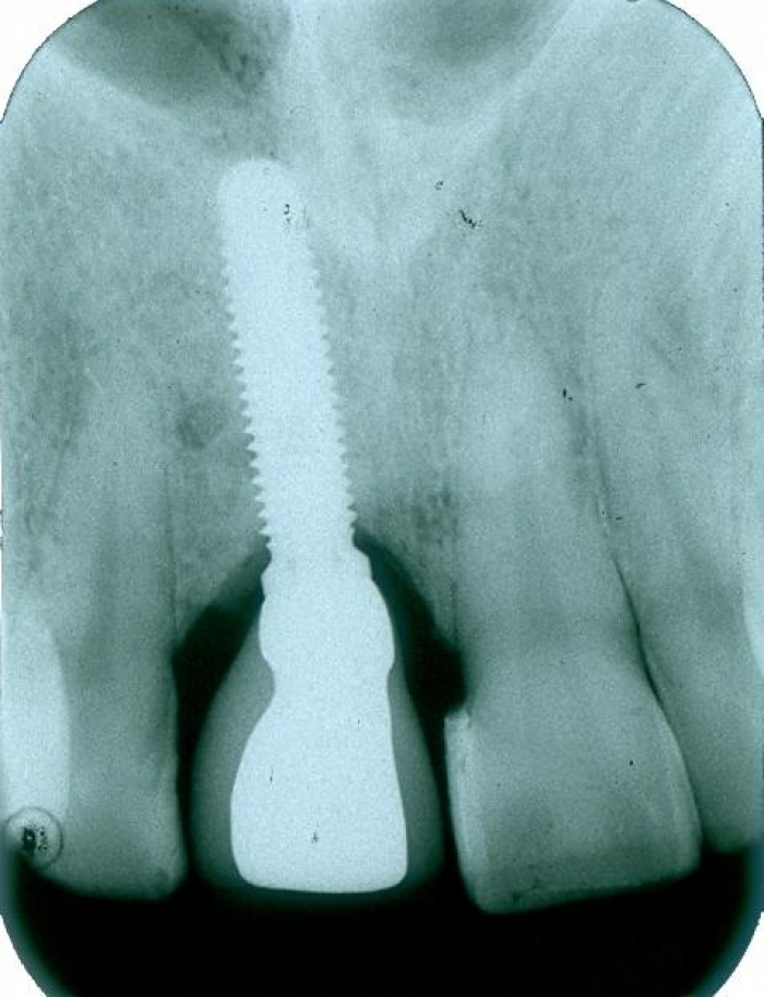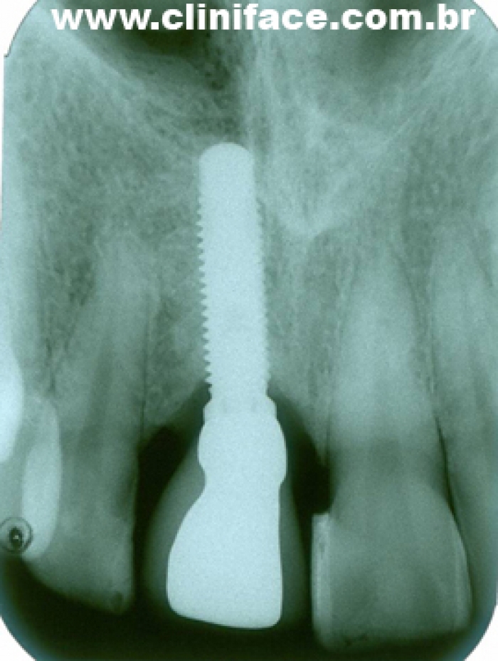 Raio X com prótese de porcelana sobre o implante