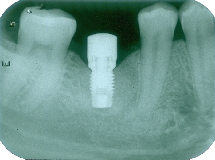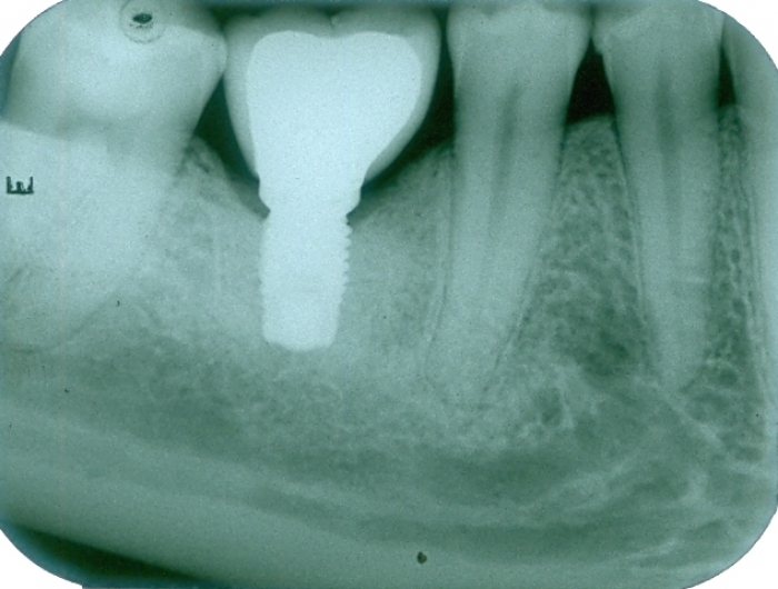 Imagens da prótese unitária sobre implante, do caso finalizado em janeiro de 2011