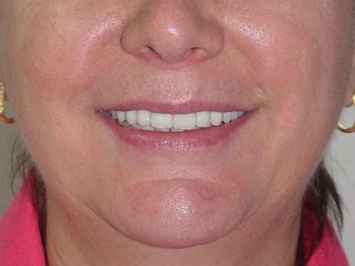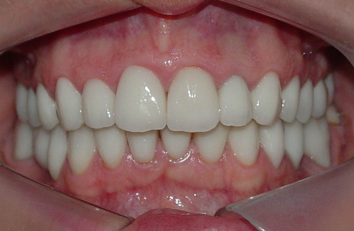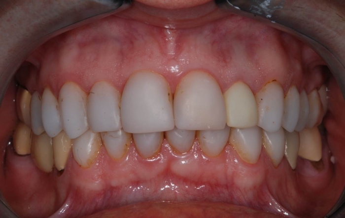 Imagens com facetas e prótese fixa em porcelana sobre implante