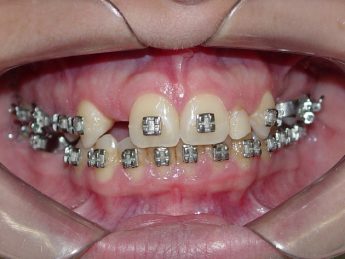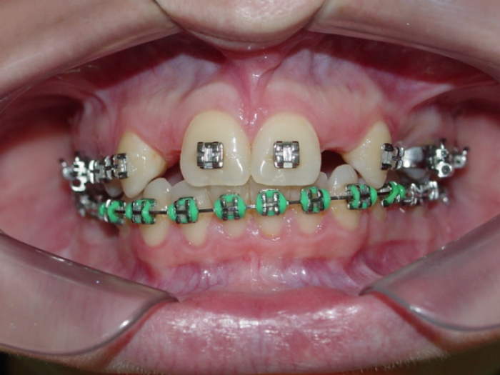 Imagem após extrações de dentes decíduos e instalação de um implante