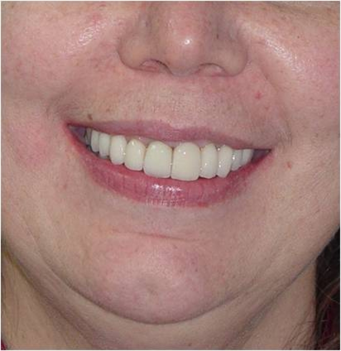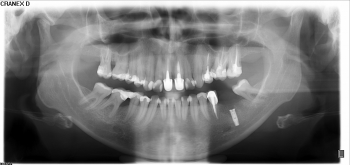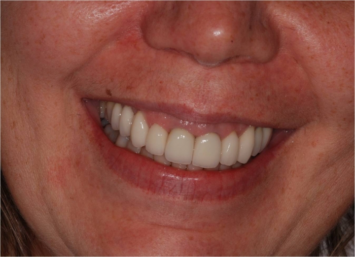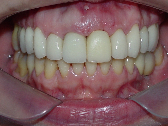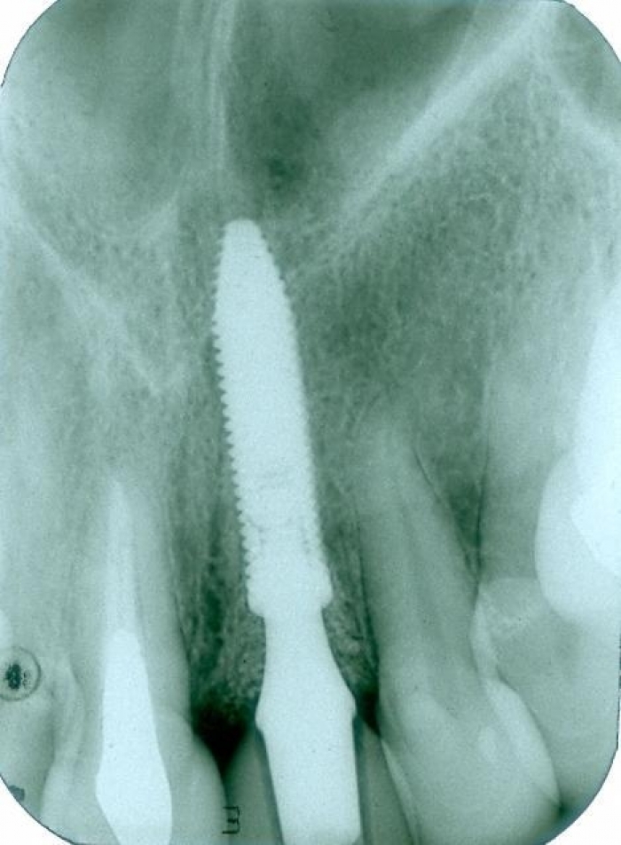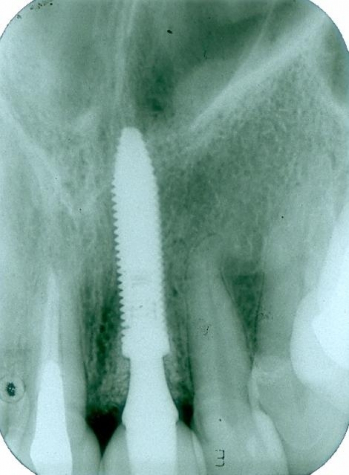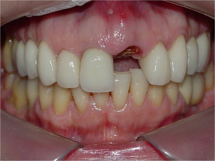 Imagem após extração e instalação de implante e prótese fixa provisória imediata
