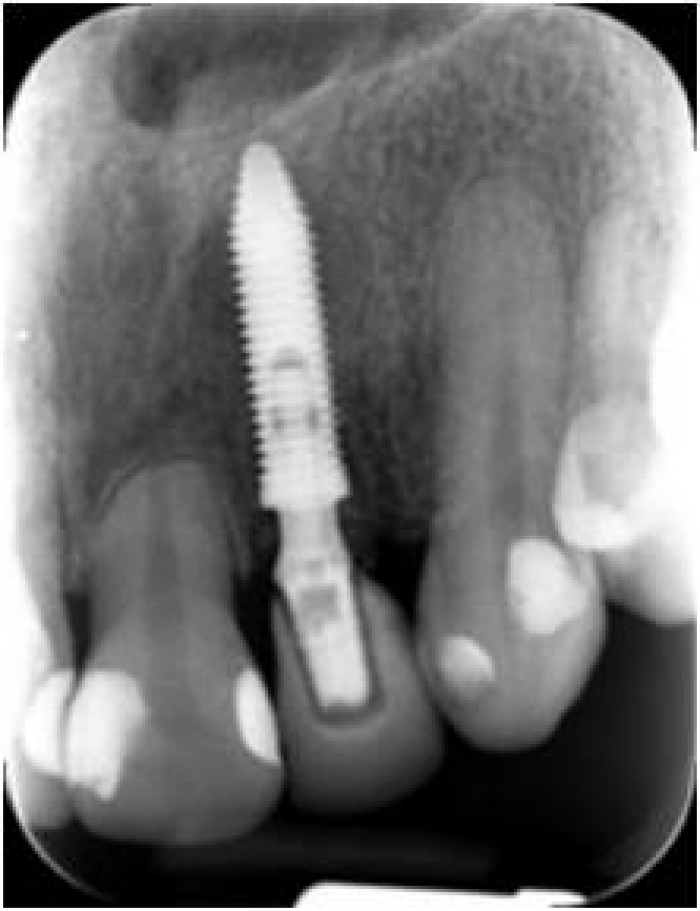 Raio x após extração do dente 22 por fratura de raiz, e instalação do implante Cone Morse