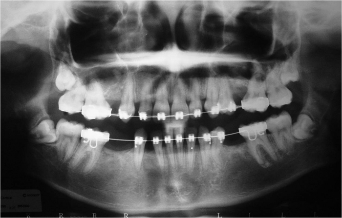 Raio x inicial, com agenesia de dentes permanentes